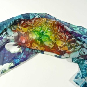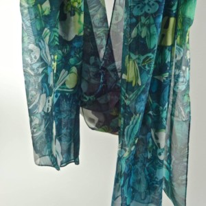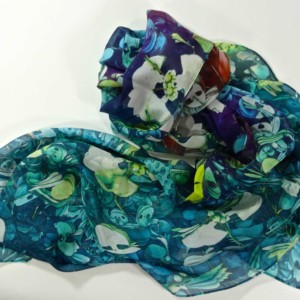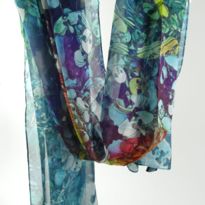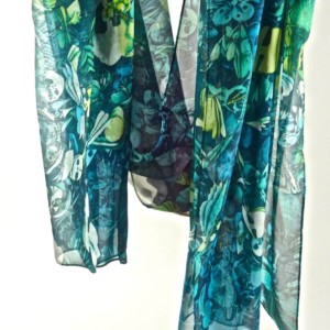 Lightweight 100% Silk Chiffon. Approx. 70″ x 24′, with machine hemming.