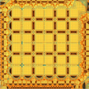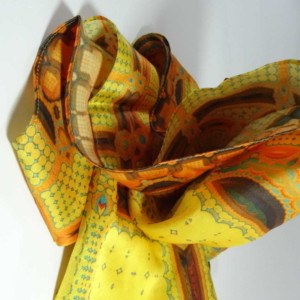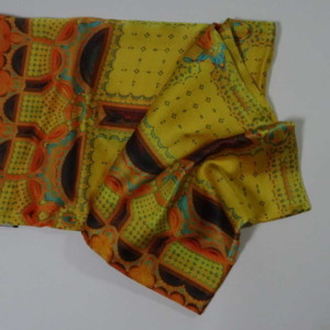 This is a 3-D fractal pattern, digitally printed on luxurious silk satin. Available in your choice of 3 sizes: 45″ (114cm) – large square scarf for creative draping, 36″ (91cm) hair scarf or neck scarf, and 22″ (56cm) flirty neck scarf or purse scarf.