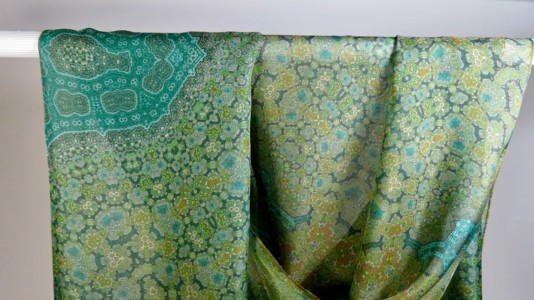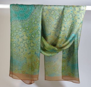 “Orient” fractal silk chiffon scarf in Green, Pink, Blue