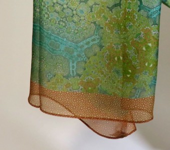 The silk chiffon used for this scarf is a very tight weave: amazingly smooth and luxurious to the touch, feels lovely to wear.